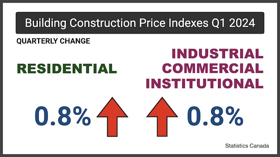 May 7, 2024 – Both residential and non-residential building construction costs increased 0.8% in the first quarter of 2024, reports Statistics Canada.