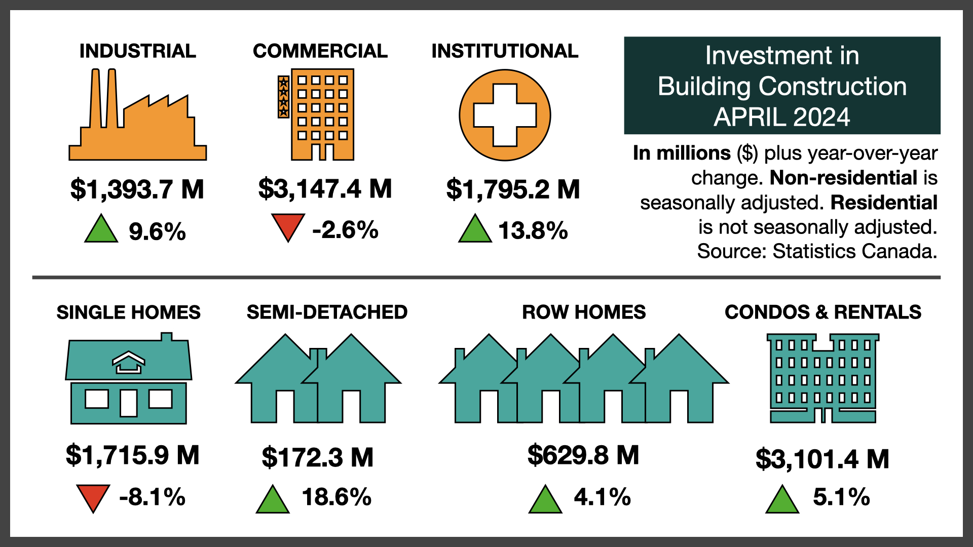 This was the 15th consecutive monthly increase for Manitoba. On a year-over-year basis, the value of institutional construction investment in Manitoba nearly doubled, from $40 million in April 2023 to $79.8 million in April 2024.